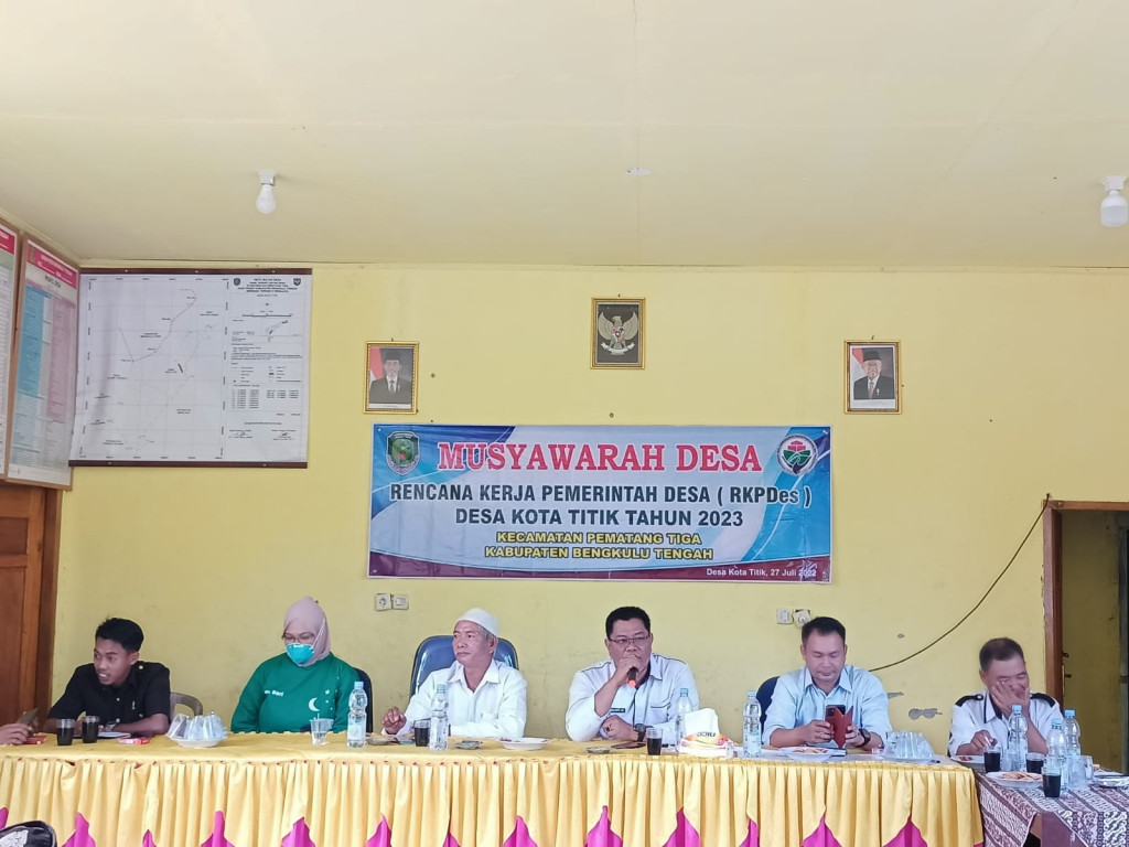 Camat Pematang Tiga Menghadiri Musdes Rencana Kerja Pemerintah Desa (RKPDes)Tahun 2023 di Desa Kota Titik Kec Pematang Tiga Tahun
